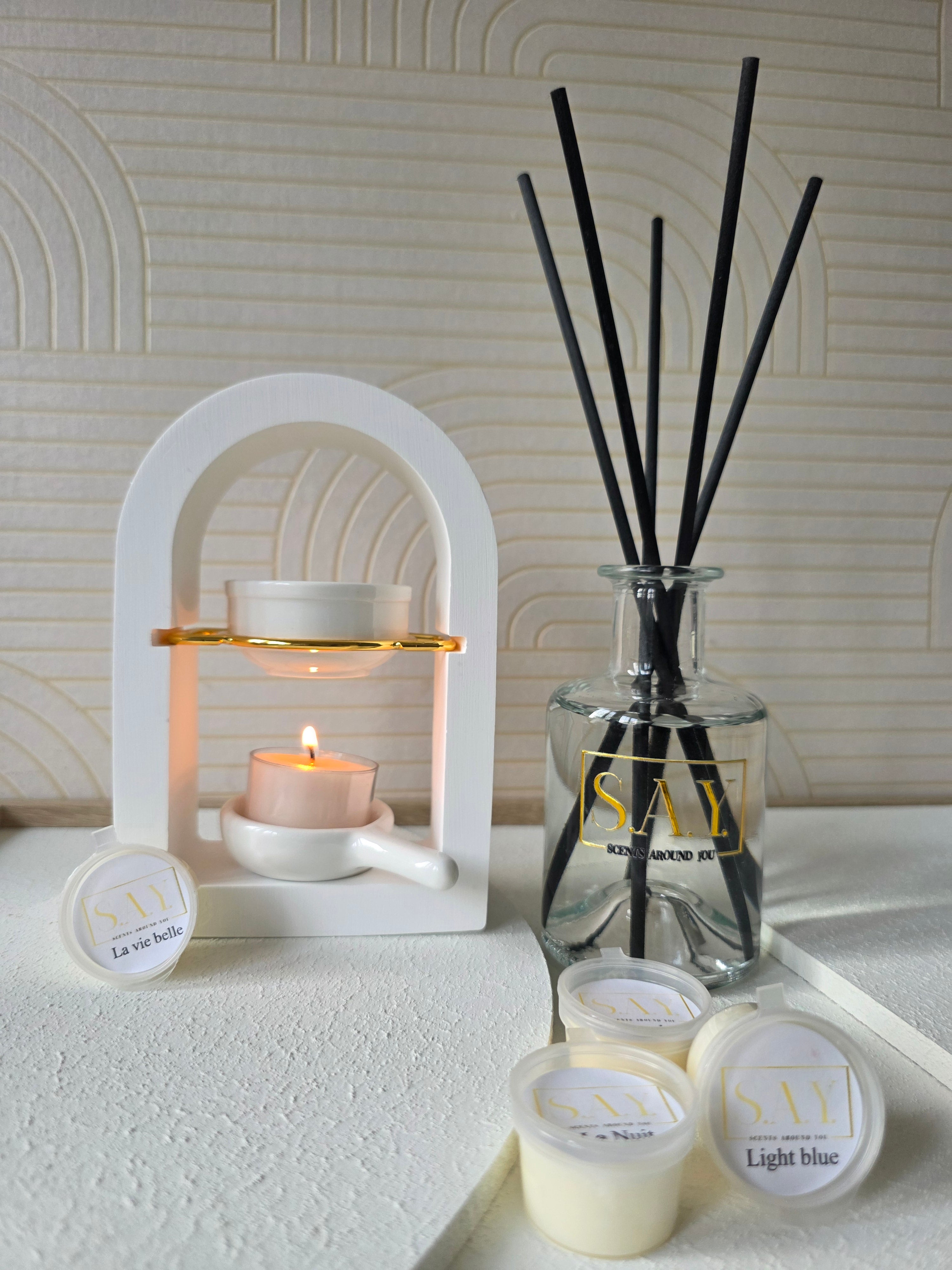 Creëer een warme, uitnodigende geur in huis met onze collectie geurproducten – van waxmelts tot geurpoeder.